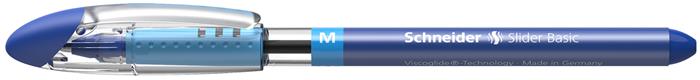 Guľôčkové pero, 0,5 mm, s vrchnákom, SCHNEIDER "Slider M", modré