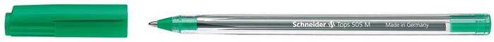 Guľôčkové pero, 0,5 mm, s vrchnákom, SCHNEIDER "Tops 505 M", zelené