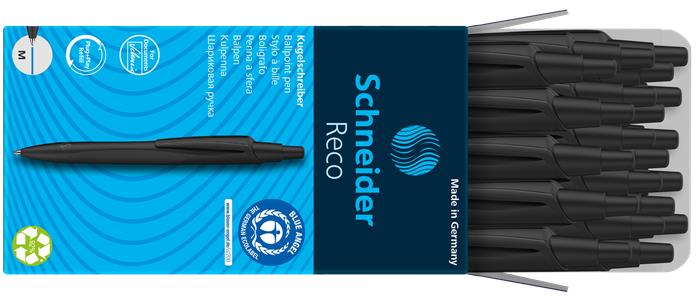 Guľôčkové pero, 0,5 mm, SCHNEIDER "Reco M", čierna, s náplňou 0,5 mm,"Eco 725 M", modrá