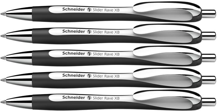 Guľôčkové pero, 0,7 mm, stláčací mechanizmus, SCHNEIDER "Slider Rave XB", čierno-biele, modré