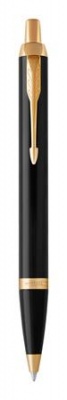 Guľôčkové pero, stláčací mechanizmus, zlatý klip, čierne telo pera, "Royal IM", modré