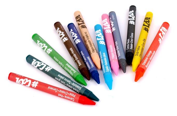 v sade je spolu 12 voskoviek: žltá, oranžová, červená, svetloružová, ružová, sky modrá, tmavomodrá, svetlozelená, tmavozelená, hnedá, sivá, čierna