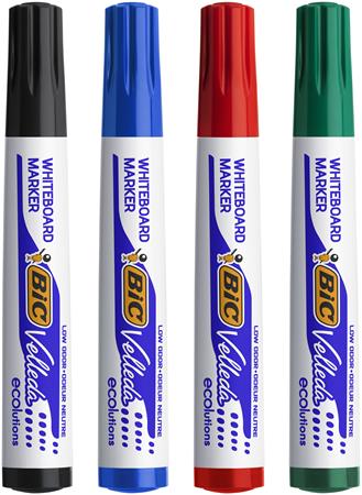 Popisovač na flipchart a tabuľu, 1,4 mm, kužeľový hrot, BIC "Velleda ecolutions", 4 rôzne farby