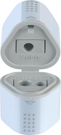 GRIP prevedenie - 3-dierkové, kvalitné, strúhadlo so zásobníkom - obľúbený GRIP bodkovaný, trojhranný tvar - vhodné na strúhanie bežných aj hrubých ceruziek a farebných ceruziek - extra veľká nádoba na odpad - uzamykateľné veko zabraňuje vysypaniu odpadu