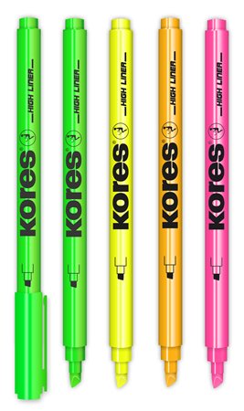 Hlavná stránkaKancelárske potrebyPísacie potrebyZvýrazňovačeZvýrazňovač, sada, 0,5-3,5 mm, KORES, 4 rôzne farby