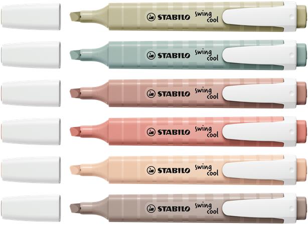 Zvýrazňovač, sada, 1-4 mm, STABILO "Swing cool NatureCOLORS", 6 rôznych farieb