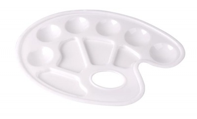 -plastová paleta na miešanie farieb - vďaka otvoru na palec sa veľmi dobre drží - paleta obsahuje 10 kalíškou na farby -s hrubým okrajom na zamedzenie odkvapkávania -rozmer: 22 x 16,5 cm - celofánové balenie s držiakom