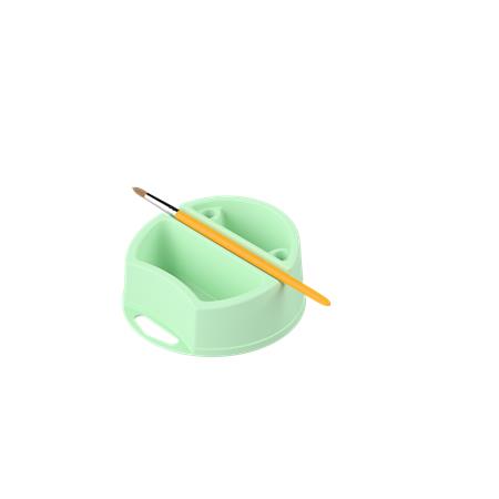 Plastová nádoba na štetce s dvoma priehradkami na vodu. - vďaka svojmu prevedeniu sa pri bežnom používaní nedá prevrátiť - s tromi držiakmi na štetce - ľahko umývateľné - v rôznych farbách, farba sa nedá vybrať