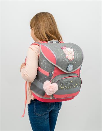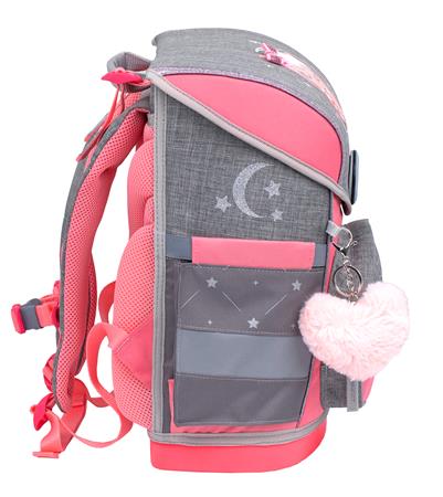 3 vnútorné priehradky (vhodné pre knihy formátu A4) + 1 priehradka na rozvrh + 2 bočné vrecká (na dáždnik a fľašu s objemom 0,7 litra)
