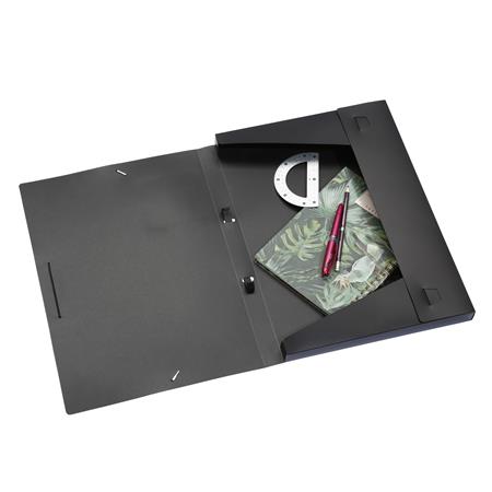 Hrúbka chrbta: 30 mmRozmery: 305 x 425 mmOrientácia: zvisláPre dokumenty vo formáte A3Zapínanie: čierna gumička3 vnútorné chlopne pre bezpečné uloženieČierna rúčkaFarba: čierna