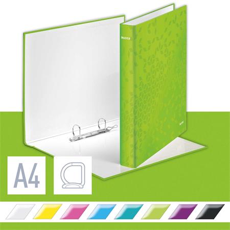 Krúžkový šanón, 2 D krúžky, 40 mm, A4 Maxi, kartón, LEITZ "Wow", zelená