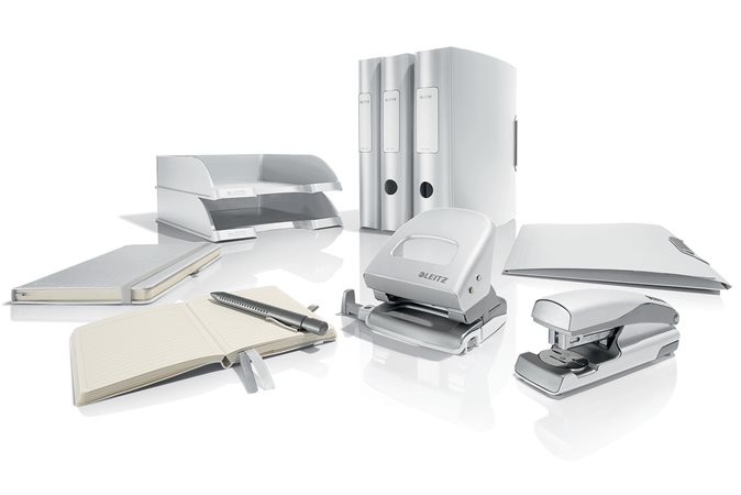 Inovatívny mobilný zoraďovač v dômyselných farbách radu Leitz Style, povrch v dizajne brúsenej ocele.,