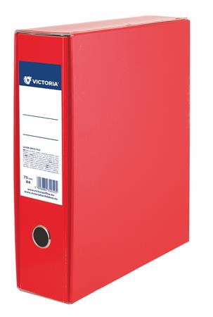 Pákový šanón s obalom, 75 mm, A4, kartón, VICTORIA OFFICE, červený