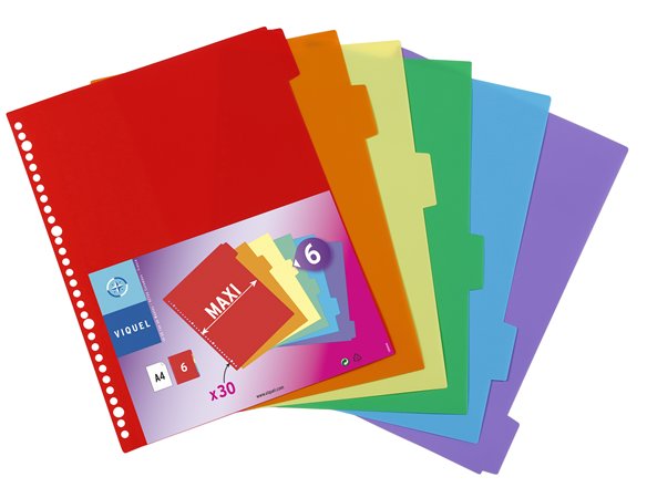 Rozraďovač, plastový, A4 Maxi, 6 x uško, VIQUEL