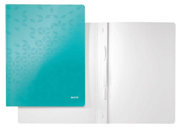 Rýchloviazač, laminovaný kartón, A4, LEITZ "Wow", ľadovo modrá