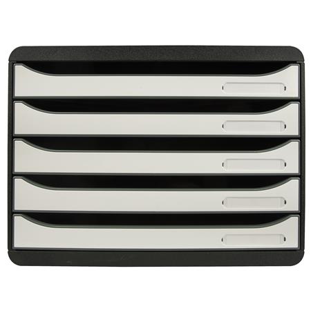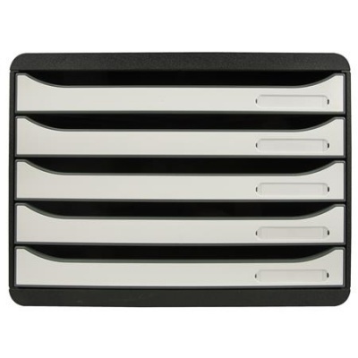 Box na dokumenty, plast, 5 zásuviek, EXACOMPTA "BIigBox Glossy", čierny-biely