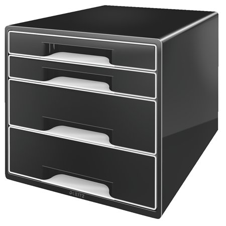 Zásuvkový box, plastový, 4 zásuvky, LEITZ "Cube", čierny