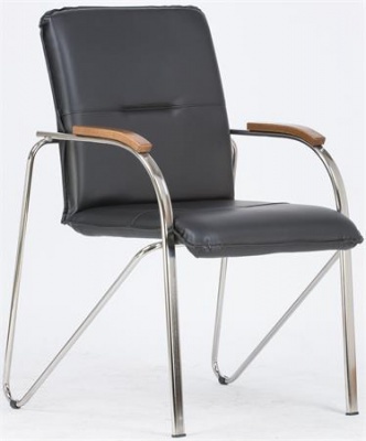 Konferenčná stolička, koženka, chrómová oceľ, opierky rúk: orech,  "Sabina", čierna
