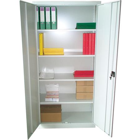 Kovová skriňa, dvojdverová, s poličkami, MAYAH, sivá