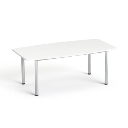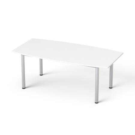 Konferenčný stôl, zakrivený, so sivými kovovými nohami, 80/95x190 cm, MAYAH "Freedom SV-43", biely