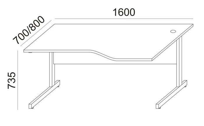 Písací stôl, oblúkový, pravý, so sivými kovovými nohami, 160 × 80 cm, MAYAH „Freedom SV-29“, biela