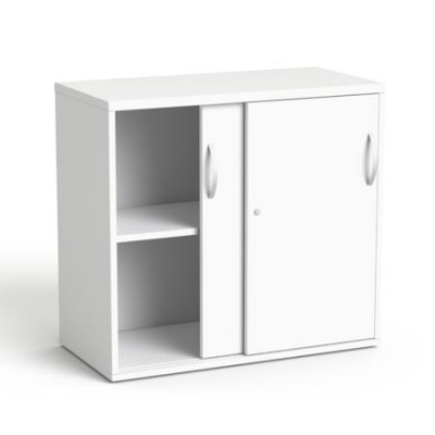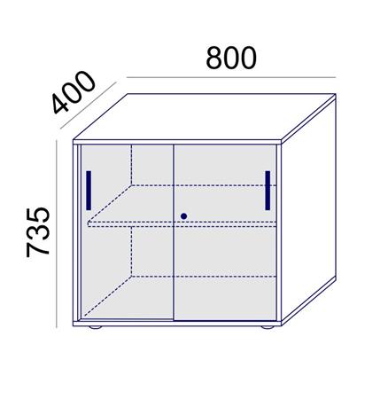 Úložný prvok má výšku rovnakú ako písacie stoly, posuvné dvere sú uzamykateľné kľúčom.