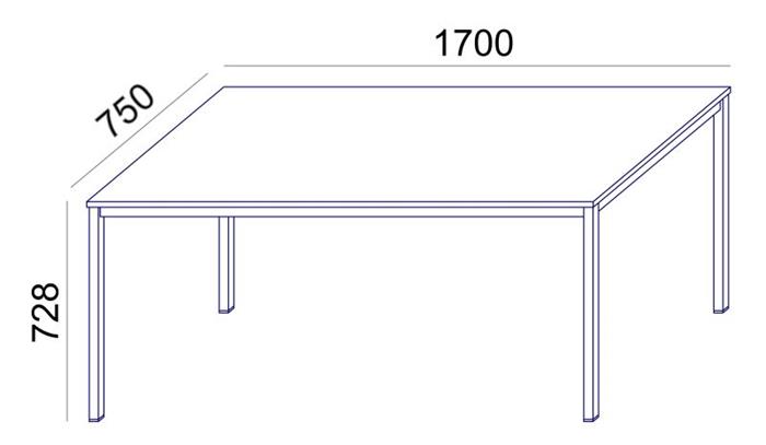 rozmery: 75x170 cmfarba: bielavýška: 72,8 cmklasické stoly na všeobecné použitie (do kancelárie, kuchynky, jedálne)stolová doska z 18 mm hrubej nábytkovej doskysivé, hranaté kovové nohyhrúbka nôh: 30x30 mm