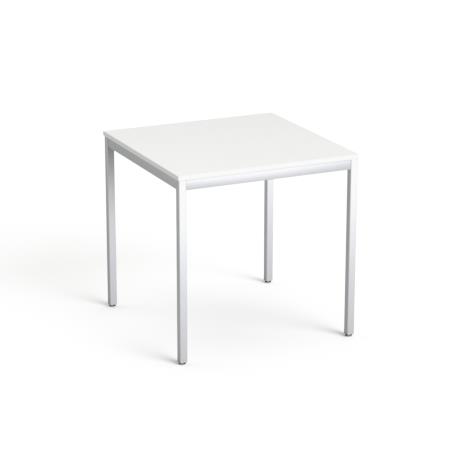 rozmery: 75x75 cmfarba: bielavýška: 72,8 cmklasické stoly na všeobecné použitie (do kancelárie, kuchynky, jedálne)stolová doska z 18 mm hrubej nábytkovej doskysivé, hranaté kovové nohyhrúbka nôh: 30x30 mm