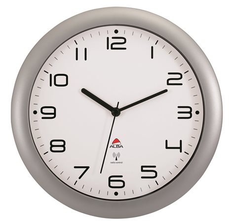 Nástenné hodiny, riadené rádiovým signálom, 30 cm, ALBA "Hornewrc", strieborná
