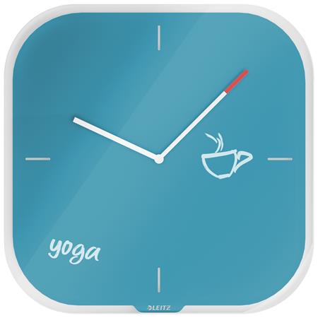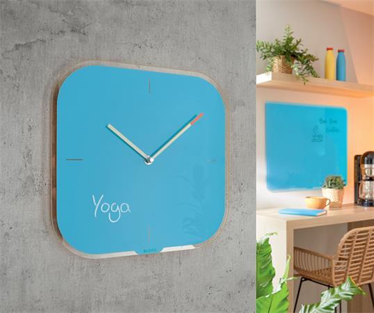 Nástenné hodiny, sklenené, štvorcové, 30x30 cm, LEITZ "Cosy", pokojná modrá