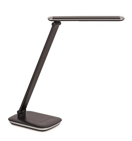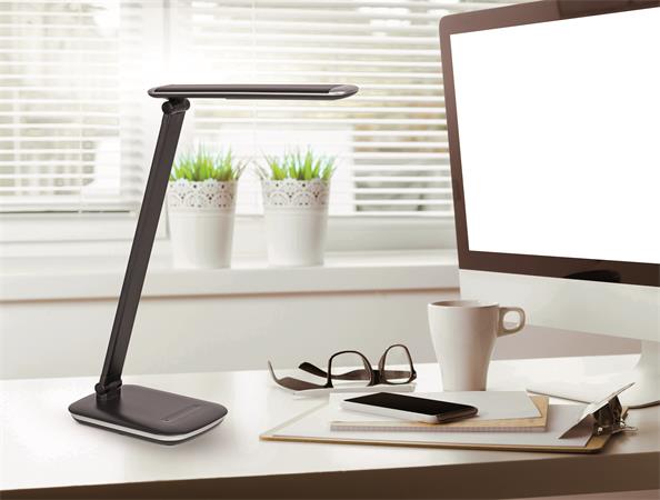 Kompaktná, nastaviteľná LED lampa s reguláciou jasu. Galvanizované hliníkové ramená, stabilný oceľový stĺp so závažím slúžiacim ako protiváha.Extra úsporná, spotrebuje o 80 % menej energie ako klasické žiarovky, zároveň šetrí miesto a je ľahko ovládateľná. Päťstupňový regulátor jasu umiestnený na dotykovej ploche na spodnej časti lampy.Bezpečné a ekologické, recyklovateľné balenie.- zdroj svetla: zabudovaný LED panel so 24 LEDkami-LED žiarovky nie sú vymeniteľné v lampe- integrovaný USB konektor 5 V, max. 500 mA na nabíjanie napr. smartfónu- svetelný tok: 830 lumenov s 5-stupňovým nastavením jasu- farebná teplota: 4000 Kelvinov, neutrálna biela- priemerná životnosť LED: 50 000 hodín- kĺbové rameno a hlava- priemerná spotreba energie: 5 kWh/1000 hod.- osvetlenie 2320 lux zo vzdialenosti 35 cm- dĺžka ramena: 36,5 cm- rozmery hlavy lampy: 26 x 5 cm- priemerná výška pri používaní cca 42,5 cm- rozmery podstavca: 18 x 13 cm- hmotnosť: 957 g- prevádzka na sieťové napätie 220/240 V- farba: čierna - záruka: 2 roky- energetická trieda: C (na škále A-G)