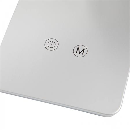 Farebnú teplotu a jas je možné nastaviť v 3 úrovniach v závislosti od dennej doby a potrieb. Dostatočne osvetlí priestor so silnou potrebou svetla, je extra ekonomický, s o 80 % nižšou spotrebou energie v porovnaní s klasickými žiarovkami. Priestorovo nenáročná, ľahko použiteľná, stabilná plastová podošva je vybavená záťažovou vložkou, ktorá slúži ako záťaž. Kovové rameno má pogumovaný povrch, plastovú hlavu svietidla je možné otáčať a nakláňať. Bezpečný a ekologický, recyklovateľný obal. - svetelný zdroj: vstavaný LED panel, s 24 LED diódami (8 teplých bielych a 16 denných bielych) - LED žiarovky nie je možné vymeniť v tele svietidla - priemerná spotreba energie: 6 kWh/1000 h - intenzita svetla: 320 lumenov - teplota farby: nastaviteľná (3 000 K , 5 000 K, 6 500 K) - priemerná životnosť LED: 20 000 hodín - s flexibilným, nastaviteľným ramenom - dĺžka ramena: 35,5 cm - priemerná pracovná výška: cca 36-38 cm - veľkosť hlavy: 16 x 6 cm - veľkosť podrážky: 16,5 x 10,6 cm - hmotnosť: 685 g - funguje zo siete 220/240 V - dotykový spínač - farba: strieborná - záruka: 2 roky - hodnotenie energetickej účinnosti: D (na stupnici A-G)