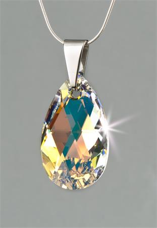 Retiazka, Made with SWAROVSKI® elements , s príveskom v tvare kvapky, biela, 16 mm