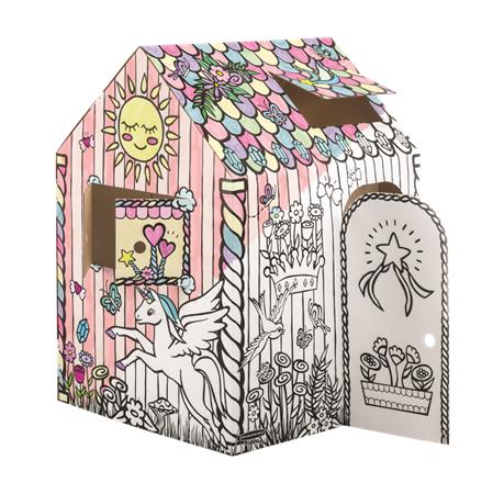 Kartónový domček, vyfarbiteľný, FELLOWES "BANKERS BOX® Playhouse", jednorožec, mix vzorov