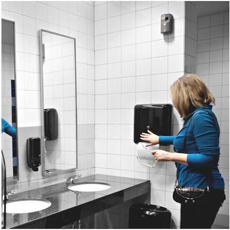 Sivý Tork osviežovač vzduchu so sprejovým dávkovačom je navrhnutý pre produktový rad Tork Image. Svojím dizajnom harmonicky zapadá do toaliet s tmavými obkladmi. Vo všetkých ohľadoch funguje výborne, je mimoriadne praktický a jeho údržba je jednoduchá. Voliteľné náplne navyše pomáhajú vytvoriť ešte príjemnejšiu atmosféru v priestore.