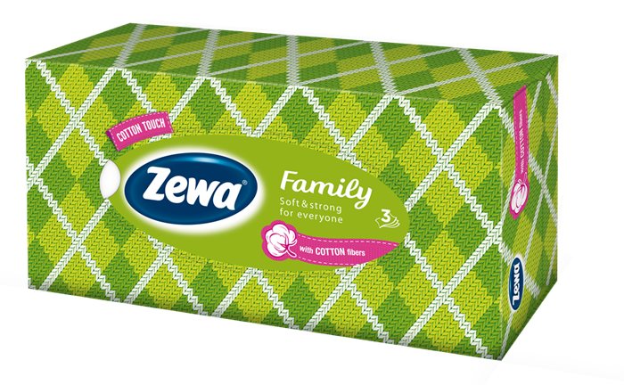 Papierové vreckovky, 3-vrstvové, 90 ks, ZEWA "Family", bez vône