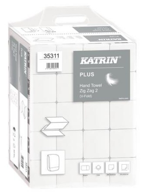 Papierové utierky, Z ohyb, 2-vrstvové, 200 listov, KATRIN, snehobiele