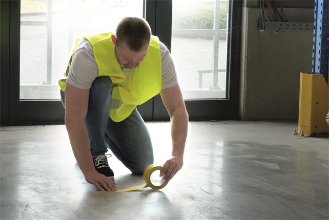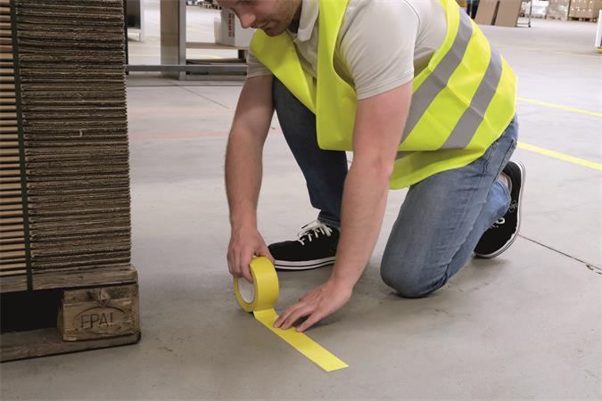 Samolepiaca podlahová označovacia páska na dočasné označenie a identifikáciu pevných alebo pohyblivých objektov a povrchov. Použitie gumového lepidla robí pásku z mäkkého PVC veľmi prispôsobivou.