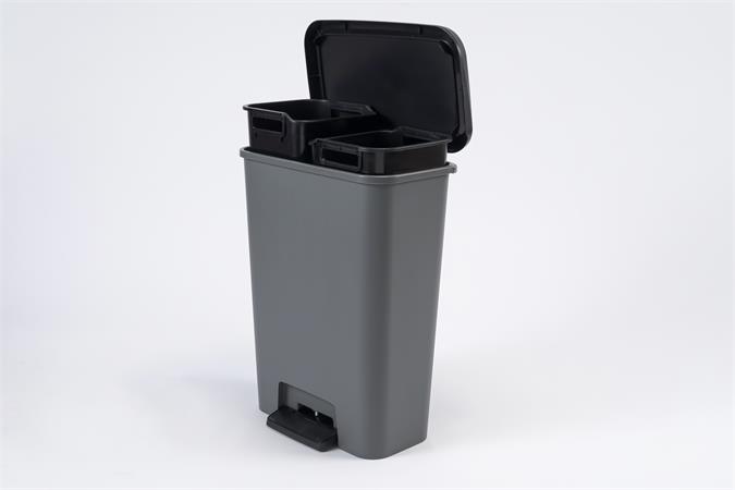 Curver doplnil rad odpadkových košov DUO radom DOU od Compatta, ktorý je vyrobený z recyklovaného materiálu a ponúka vynikajúcu kvalitu a spoľahlivosť. Compatta DOU znamená funkčné odpadkové koše s jednoduchým dizajnom, ktoré ľahko zapadnú do každého štýlu interiéru. S dvomi 23-litrovými vyberateľnými vnútornými nádobami je Compatta DUO ideálnym riešením pre selektívny zber odpadu. Jeho široký a pohodlný pedál sa dá ľahko zložiť. Štyri protišmykové nožičky poskytujú maximálnu priľnavosť k podlahe a zaisťujú stabilitu počas používania. Jeho veko sa ticho zatvára.