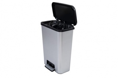 Odpadkový kôš, pedálový, hranatý, 50 l, CURVER "Compatta", čierno-strieborná