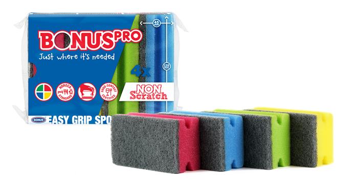 Tvarovaná špongia špeciálne prispôsobená požiadavkám segmentu HoReCa. Farebne kódovaný čistiaci prostriedok podľa HACCP predpisov pre profesionálne čistenie. Zodpovedá FCC (Food Contact Certified) certifikátu, a preto je ideálnou voľbou pre profesionálnych používateľov – reštaurácie, hotely, cateringové služby, nemocnice, verejné inštitúcie. So sivou abrazívnou vrstvou umožňuje bez poškriabania odstrániť aj suché, aj už navlhčené nečistoty. Trvácna, extra veľká (135x71x45 mm). 4 ks/bal