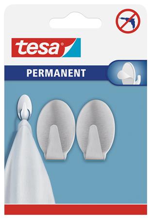 Oválne, kovové, trvalé háčiky tesa® sú moderné háčiky na ľahké predmety. Vyrobené sú z nerezovej ocele a prispôsobené na trvalé pripevnenie.