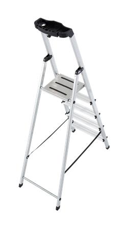 prístupný z jednej strany, s plošinou na vrchu, široká bezpečnostná plošina s vysokým držiakom, veľký držiak na vrchu rebríka na odkladanie nástrojov, 80 mm široké protišmykové priečky, nosnosť: 150 kg