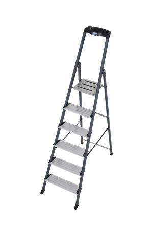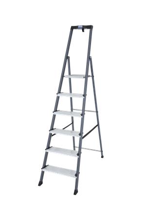eloxované rameno je odolné voči opotrebeniu a zabraňuje zašpineniu rúk, veľký odkladací priestor na náradie so vstavaným vešiakom na vedro, 125 mm široká protišmykové priečky, veľkorozmerné bezpečnostné zátky zabezpečujú extra veľkú bezpečnosť, materiál: hliník, nosnosť: 150 kg