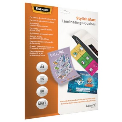 Laminovacia fólia, za tepla, 80 mikr., A4, matná, 25 ks, FELLOWES "Admire Stylish"