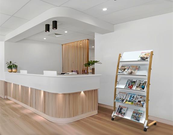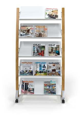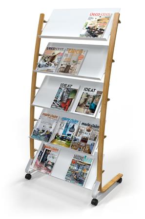 Elegantný dizajn s kombináciou materiálov dreva a ocele, ľahko viditeľný obsah. - kovový stojan s plastovými policami - pojazdný stojan so 4 kolieskami (2 uzamykateľné) - 5x3 priehradky na dokumenty A4 (24x32 cm) - hĺbka priehradky: 3 cm - jednoduchá montáž, sada na upevnenie je súčasťou balenia - kompaktné balenie s cieľom znížiť Emisie CO2 - šetrné k životnému prostrediu a 100% recyklovateľné