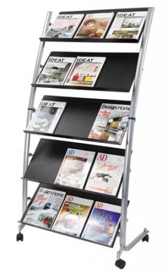 Hlavná stránkaTechnologické výrobkyPrezentáciaDržiaky na prospekty, stojany, prezentačné tabuleStojan na katalógy, mobilný, 5 priečinkov, ALBA, sivý/čierny