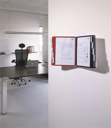 Držiak na prezentačné tabule, nástenný, 10 ks prezentačných tabúľ, DURABLE "SHERPA WALL", červená