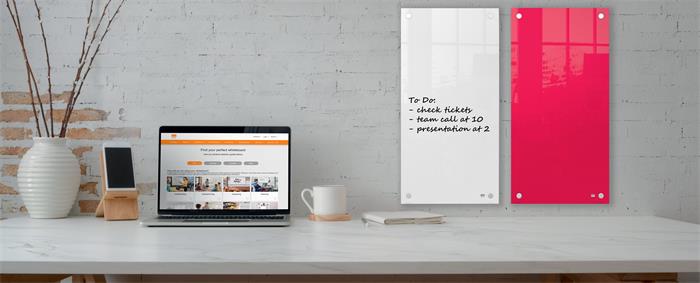 Odkazová tabuľa, sklenená, nástenná, úzka, 30x60 cm, NOBO "Home", biela